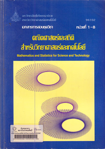 คณิตศาสตร์และสถิติสำหรับวิทยาศาสตร์และเทคโนโลยี = Mathematics and statistics for science and technology / โครงการสาขาวิชาวิทยาศาสตร์และเทคโนโลยี มหาวิทยาลัยสุโขทัยธรรมาธิราช |
