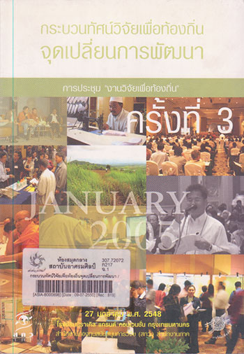 กระบวนทัศน์วิจัยเพื่อท้องถิ่นจุดเปลี่ยนการพัฒนา / กชกร ชิณะวงศ์, บรรณาธิการ: