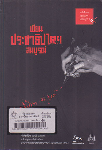 ชื่อเรื่องที่แตกต่าง  Cover title: เขียนประชาธิปไตยสมบูรณ์