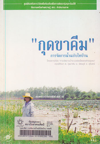 กุดขาคีม การจัดการน้ำฉบับไทบ้าน / พรทวี ยอดมงคล ... [และคนอื่นๆ] ; เกศสุดา สิทธิสันติกุล : บรรณาธิการ