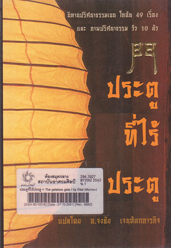 ประตูที่ไร้ประตู = The gateless gate / by Ekai (Mumon) ; แปลโดย จงชัย เจนหัตถการกิจ จากต้นฉบับภาษาอังกฤษของ Nyogen Senzaki and Paul Reps.