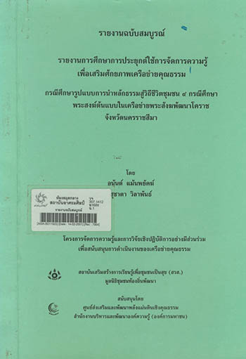 รายงานฉบับสมบูรณ์ การประยุกต์ใช้การจัดการความรู้เพื่อเสริมศักยภาพเครือข่ายคุณธรรม : กรณีศึกษารูปแบบการนำหลักธรรมสู่วิถีชีวิตชุมชน 4 กรณีศึกษาพระสงฆ์ต้นแบบในเครือข่ายพระสังฆพัฒนาโคราช จังหวัดนครราชสีมา / โดย อนันต์ แม้นพยัคฆ์, สุชาดา วิลาพันธ์