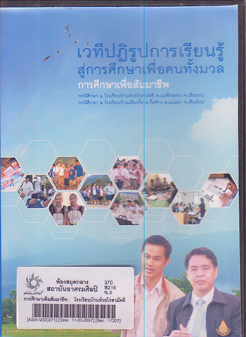 | 2. | สื่อวีดิทัศน์ | 370 ส215 ฉ.2 Barcode: ASIA-V000270 | ►ตู้สื่อโสตทัศน์ | On Shelf ขอยืม | |||||