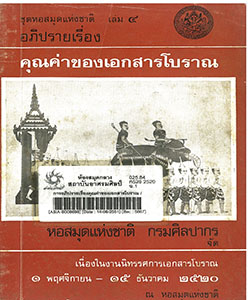 หมายเหตุ  หอสมุดแห่งชาติ กรมศิลปากรจัดพิมพ์เนื่องในงานนิทรรศการเอกสารโบราณ 1 พ.ย. - 15 ธ.ค. 2520