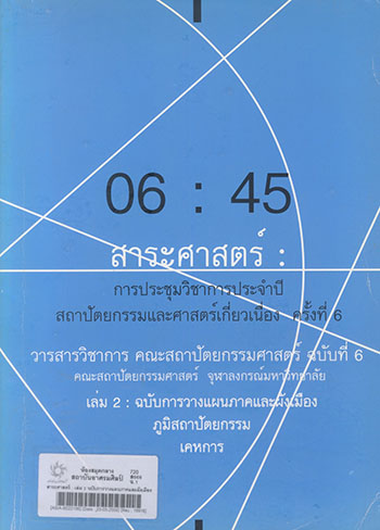 สาระศาสตร์ : เล่ม 2 ฉบับการวางแผนภาคและผังเมือง ภูมิสถาปัตย เคหการ การประชุมวิชาการประจำปี สถาปัตยกรรมและศาสตร์ที่เกี่ยวเนื่อง ครั้งที่ 6