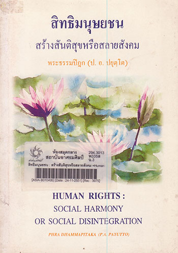 สิทธิมนุษยชน : สร้างสันติสุขหรือสลายสังคม =Human rights social harmony or social disintegration / พระธรรมปิฎก (ป.อ.ปยุตฺโต)