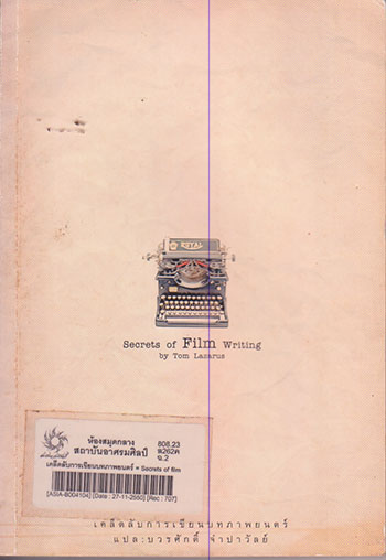 เคล็ดลับการเขียนบทภาพยนตร์ = Secrets of film writing / โดย Tom Lazarus ; แปลโดย บวรศักดิ์ จำปาวัลย์