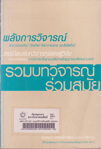 ชื่อชุด  การวิจารณ์ในฐานะพลังทางปัญญาของสังคมร่วมสมัย
