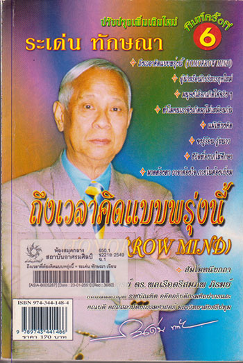 | 1. | หนังสือ | 650.1 ร221ถ 2549 Barcode: ASIA-B005287 | ►เทคโนโลยี | On Shelf ขอยืม | |||||
