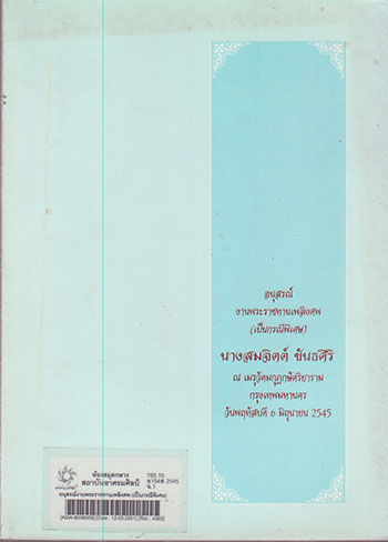 ชื่อเรื่องเพิ่ม  อนุสรณ์งานศพ (สมจิตต์ ขันธศิริ)