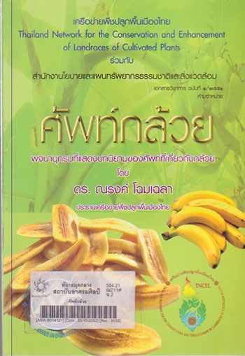 ศัพท์กล้วย : พจนานุกรมที่แสดงบทนิยามของศัพท์ที่เกี่ยวกับกล้วย / ณรงค์ โฉมเฉลา |