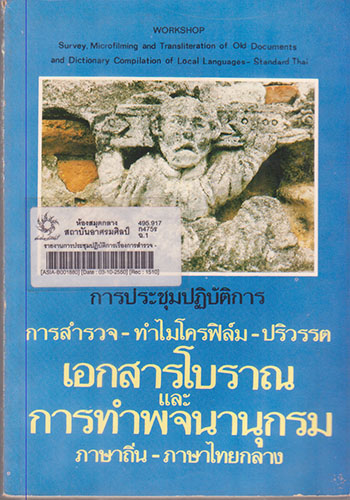 รายงานการประชุมปฏิบัติการเรื่องการสำรวจ - ทำไมโครฟิล์ม - ปริวรรตเอกสารโบราณ และการทำพจนานุกรมภาษาถิ่น ภาษาไทยกลาง