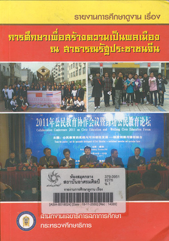 รายงานการศึกษาดูงาน เรื่อง การศึกษาเพื่อสร้างความเป็นพลเมือง ณ สาธารณรัฐประชาชนจีน/ สำนักงานเลขาธิการสภาการศึกษา กระทรวงศึกษาธิการ |