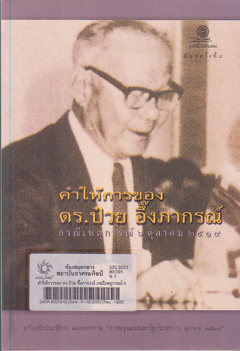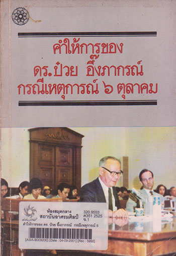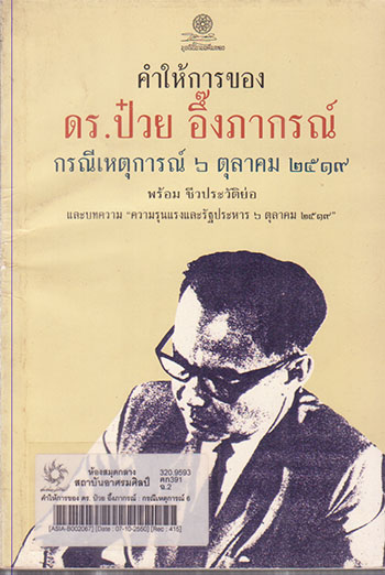 คำให้การของ ดร. ป๋วย อึ๊งภากรณ์ : กรณีเหตุการณ์ 6 ตุลาคม 2519 / มูลนิธิโกมลคีมทอง