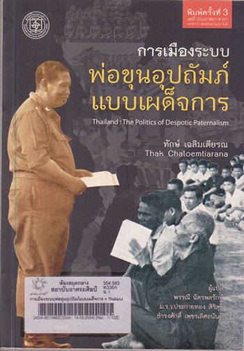 การเมืองระบบพ่อขุนอุปถัมภ์แบบเผด็จการ = Thailand : the politics of despotic paternalism / ทักษ์ เฉลิมเตียรณ ; ผู้แปล: พรรณี ฉัตรพลรักษ์, ม.ร.ว. ประกายทอง สิริสุข, ธำรงศักดิ์ เพชรเลิศอนันต์ |
