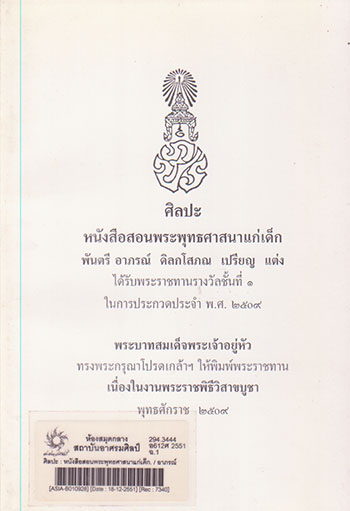 ศิลปะ : หนังสือสอนพระพุทธศาสนาแก่เด็ก. / อาภรณ์ ดิลกโสภณ