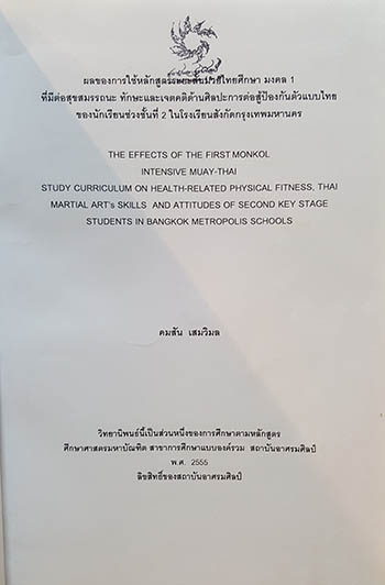 The Effects of The first Monkol Intensive Muay -Thai Study Curriculumm on Health-Related Physical Fitness ,Thai Martial Art^'s Skills and Attitudes of Secound Key Stage Students in Bangkok Metropolis Schools |