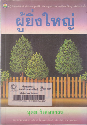 | 1. | หนังสือ | นว อ786ผ 2537 Barcode: ASIA-B003975 | ►นวนิยาย | On Shelf ขอยืม | |||||
