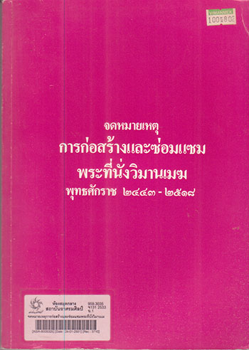 ชื่อเรื่องเพิ่ม  การก่อสร้างและซ่อมแซมพระที่นั่งวิมานเมฆ พุทธศักราช 2443-2518