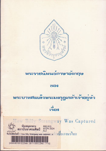 จับไอ้เสือบิลลี่ = How Billy Strangway was captured ; a bicycling story / ของ T. M. Vanjohn [นามแฝง] ; [แปล] โดย,ม.ล. ปิ่น มาลากุล.