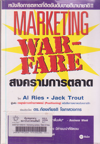 สงครามการตลาด = Marketing warfare / โดย Al Ries, Jack Trout ; เรียบเรียงโดย ก้องเกียรติ โอภาสวงการ