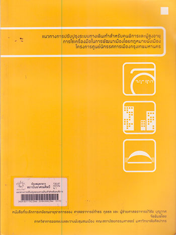 แนวทางการปรับปรุงระบบทางเดินเท้าสำหรับคนพิการและผู้สูงอายุการใช้เครื่องมือในการพัฒนาเมืองโดยกฎหมายผังเมืองโครงการศูนย์นิทรรศการเมืองกรุงเทพมหานคร / กำธร กุลชลและชัยสิทธิ์ ด่านกิตติกุล