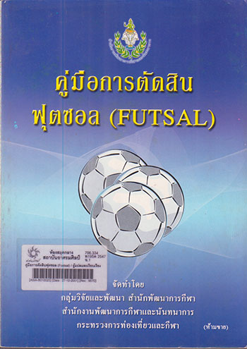 คู่มือการตัดสินฟุตซอล (Footsal) / ผู้แปลและเรียบเรียง ทวีทรัพย์ เขยผักแว่น, ปัญญา หาญลำยวง, รัศมี จินดามัย